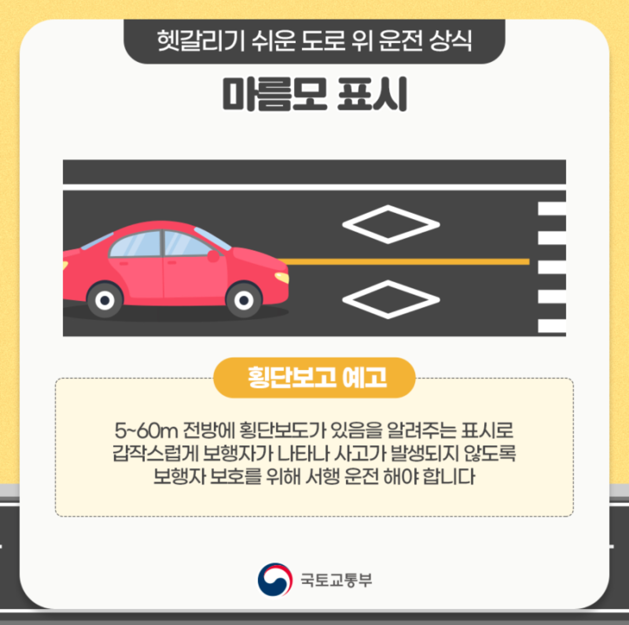 마름모 표시란 횡단보도 예고 표시 입니다.
