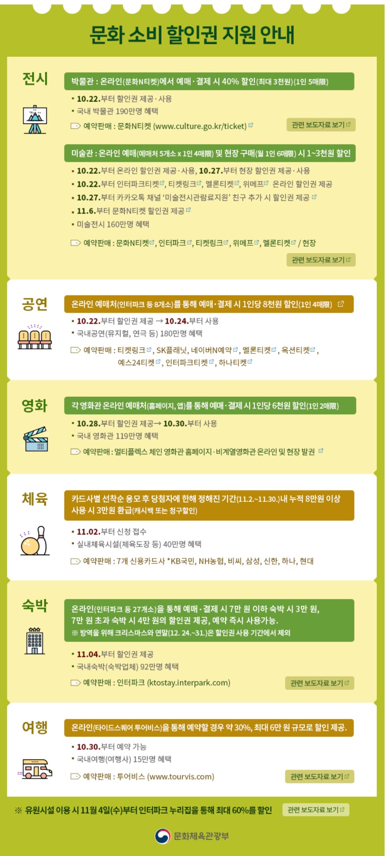 10월 22일부터 공연·영화·체육 분야 할인쿠폰