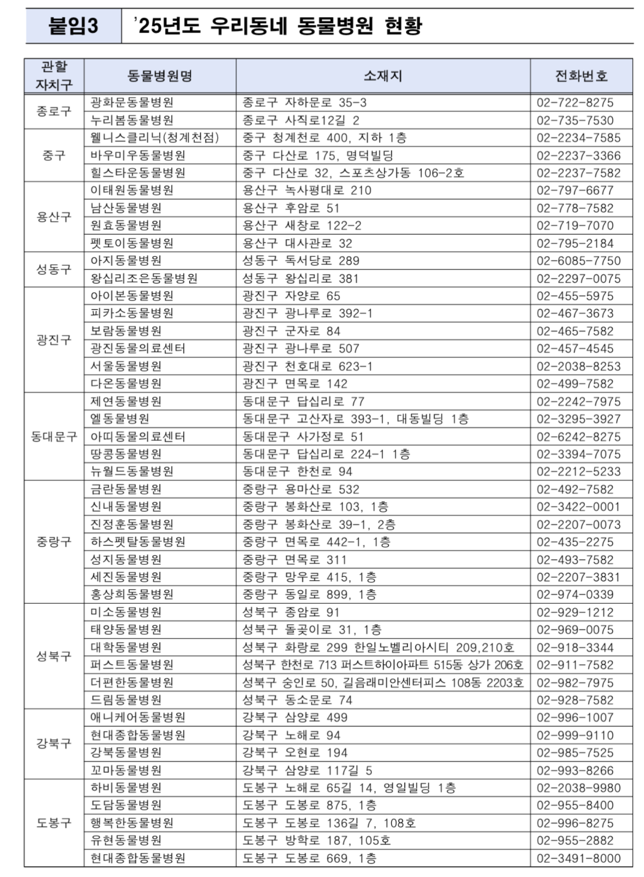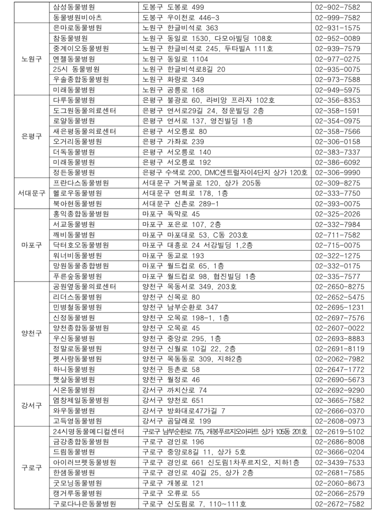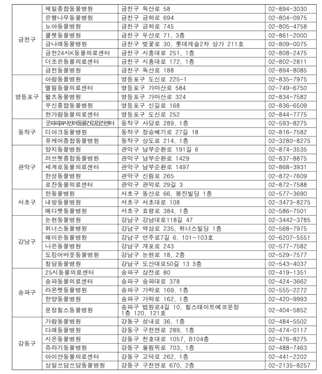 서울시 우리동네 동물병원