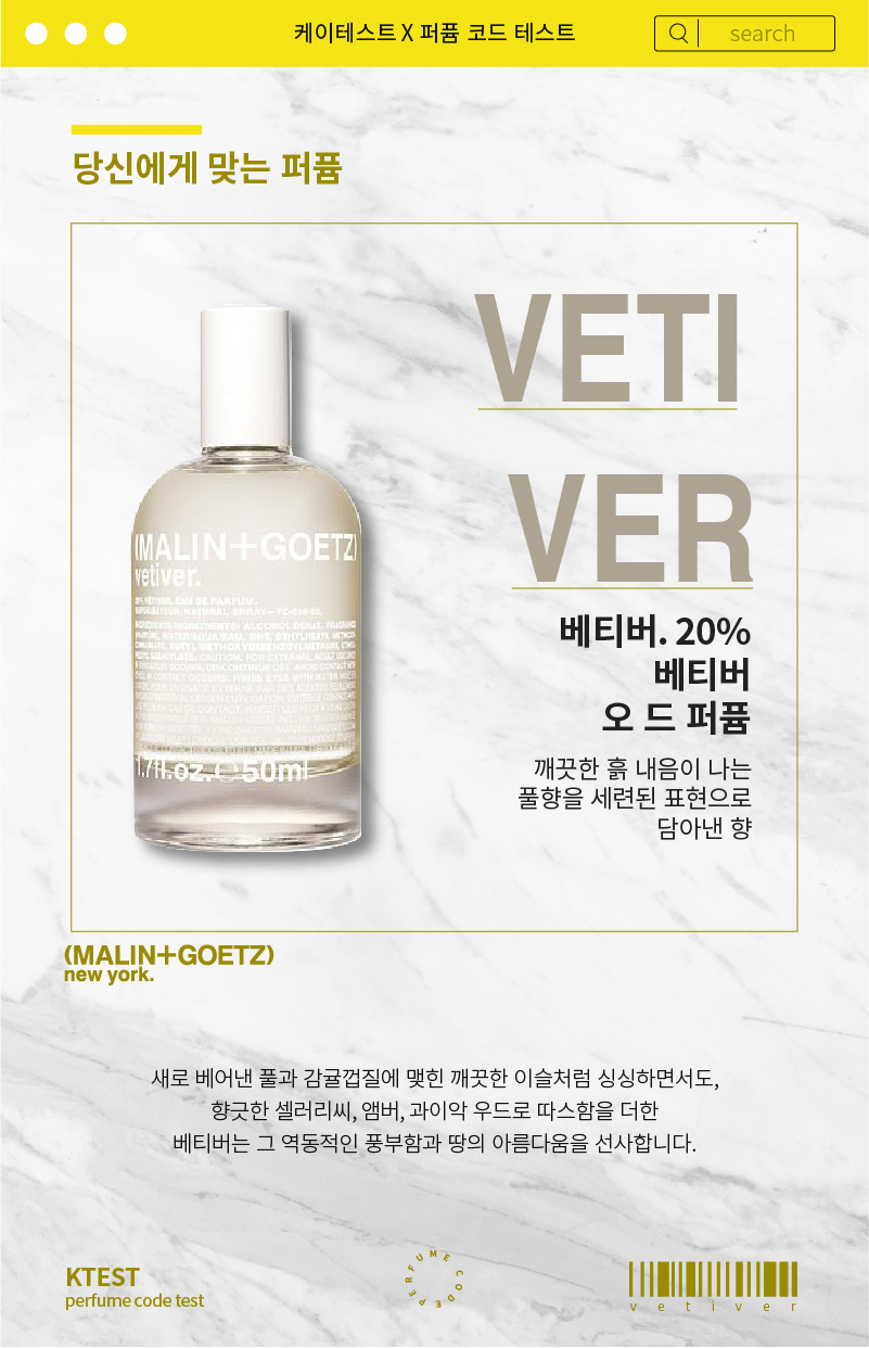 당신에게 맞는 퍼퓸으로 VETI VER 베티버 오 드 퍼퓰 긴가민가 코드가 나왔습니다.