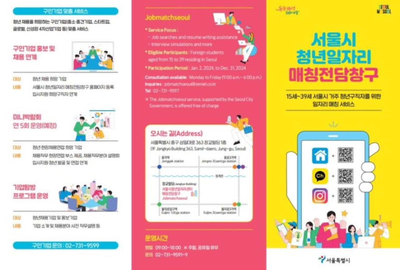 ➡️방문 신청: 서울특별시 중구 삼일대로 363 장교빌딩, 1층 서울시 청년일자리 매칭전담창구