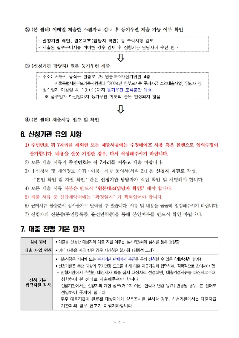 (이메일 선 접수→서울특별시한부모가족지원센터 서류 확인 회신→등기 접수)