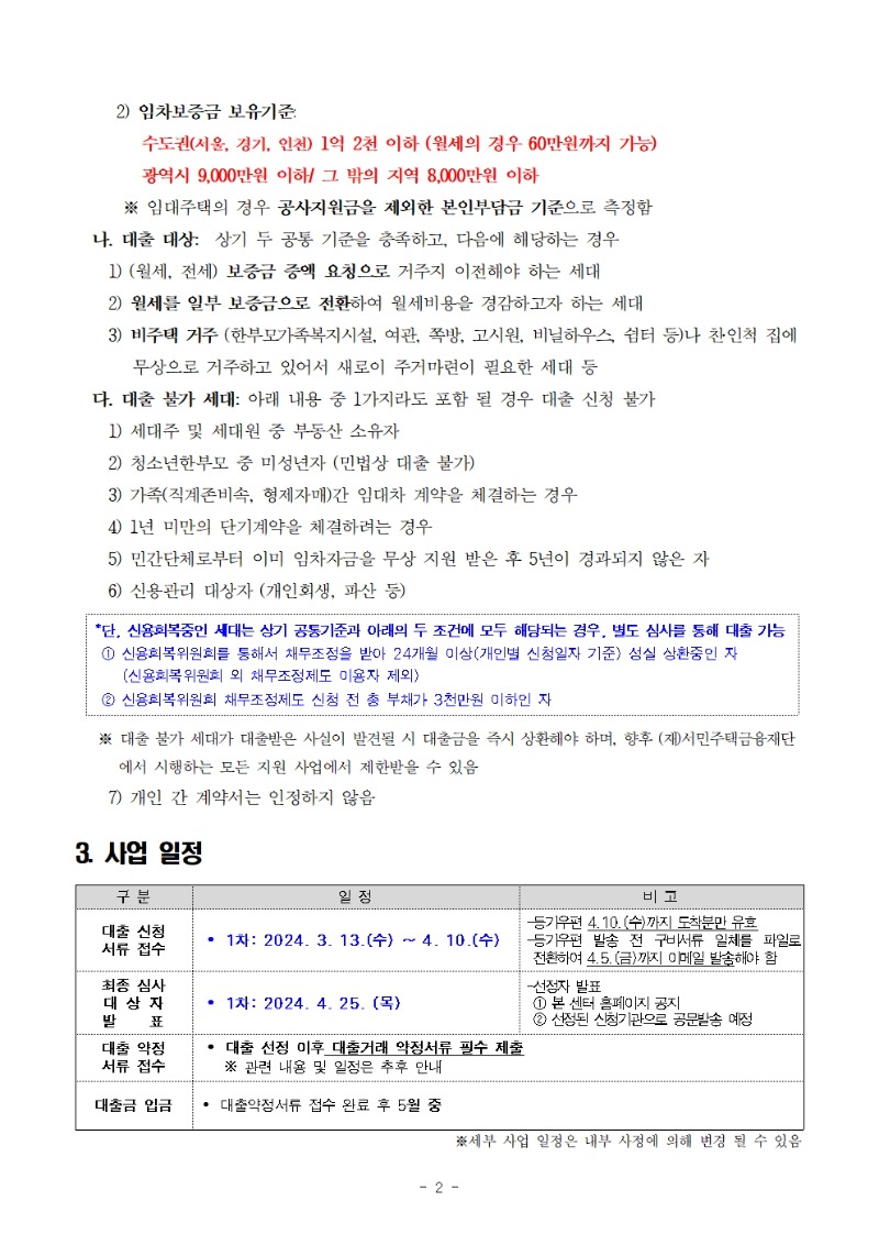 (신용회복중인 성실상환 2년 이상 경과 세대는 최대 3백만원)