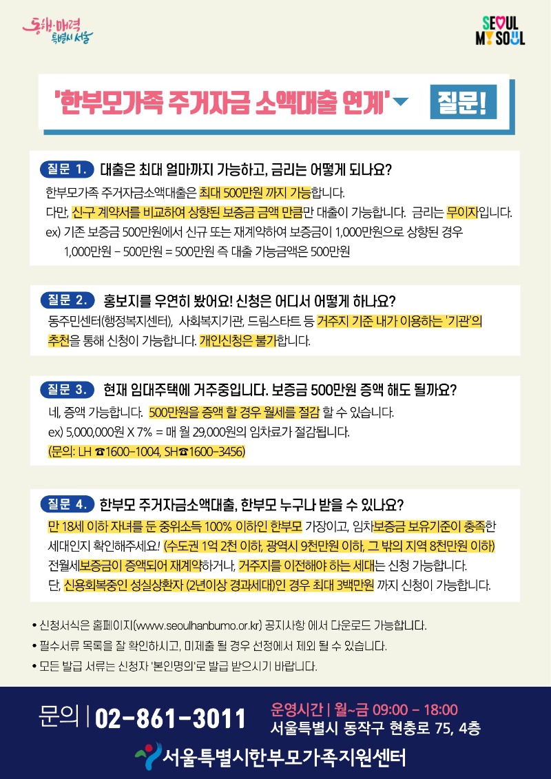 보다 자세한 문의는 맞춤형복지팀 (☎ 02-861-3011)로 문의하시길 바랍니다.