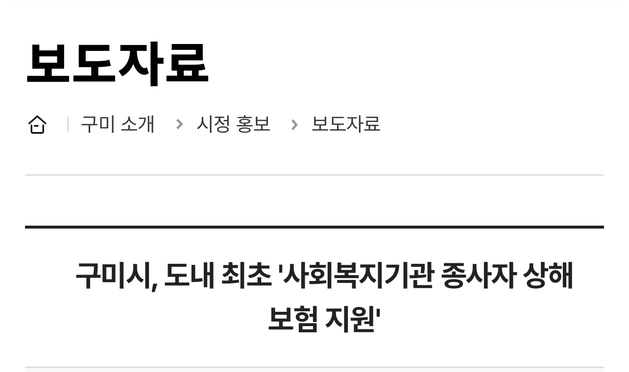구미시는 시청 국제통상협력실에서 사회복지협의회․사회복지사협회 관계자 등이 참석한 가운데 한국사회복지공제회와 사회복지시설 종사자 처우개선과 복지 증진을 위한 ‘사회복지기관 종사자 상해보험 지원사업’ 업무협약을 체결했다고 합니다.