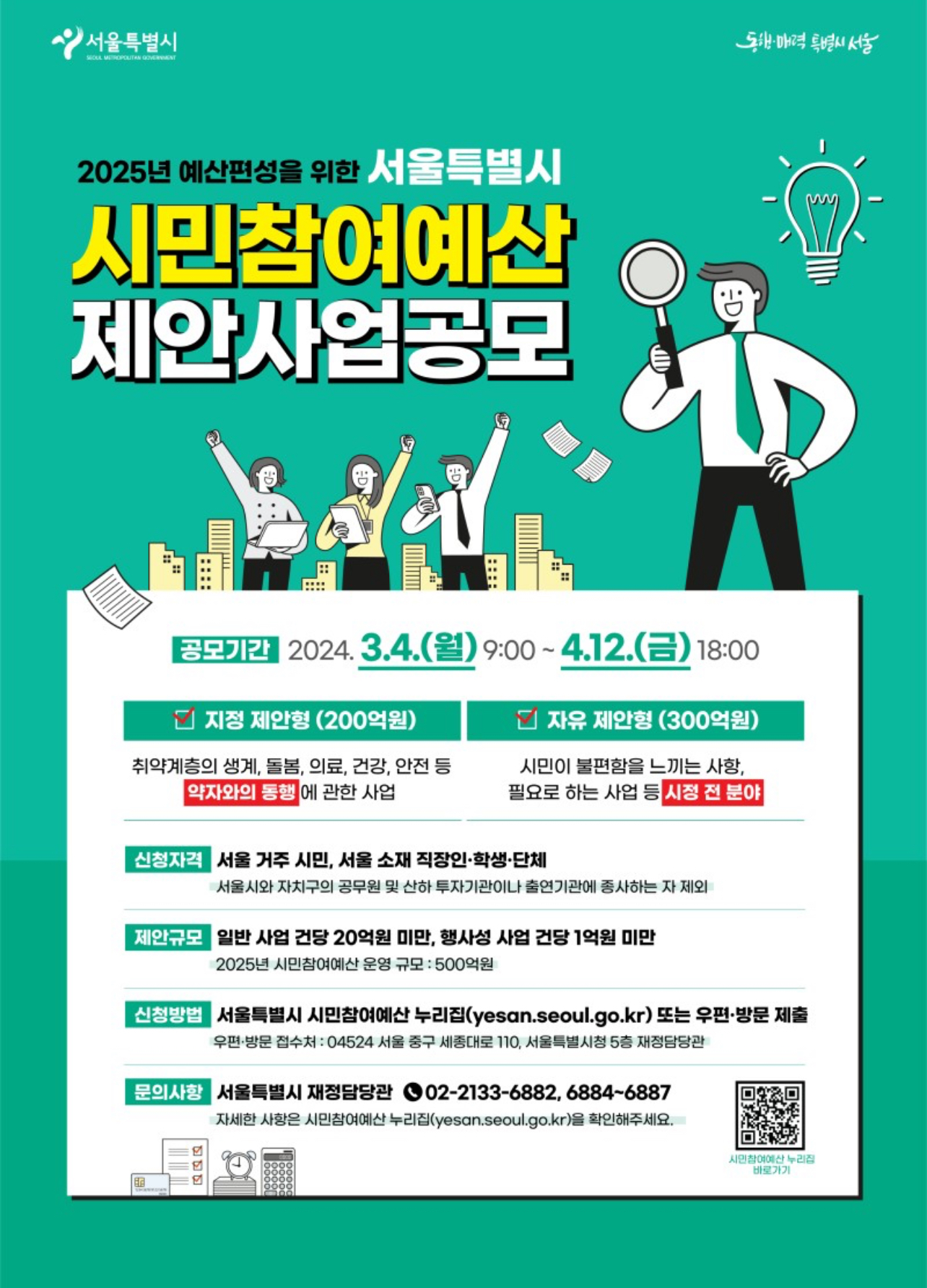 - 우편•방문 : 서울시 중구 세종대로 110, 서울특별시청 5층 재정담당관