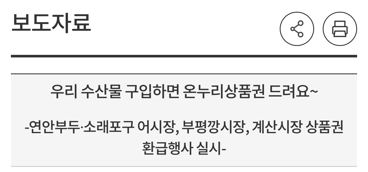 한편 지난 2월 연안부두 인천종합어시장·소래포구 전통어시장·계산시장 3개소에서 진행한 설 명절 온누리상품권 환급행사는 약 4억 2천만 원의 환급 실적을 내며 상인과 소비자들에게 큰 호응을 얻은 바 있습니다.