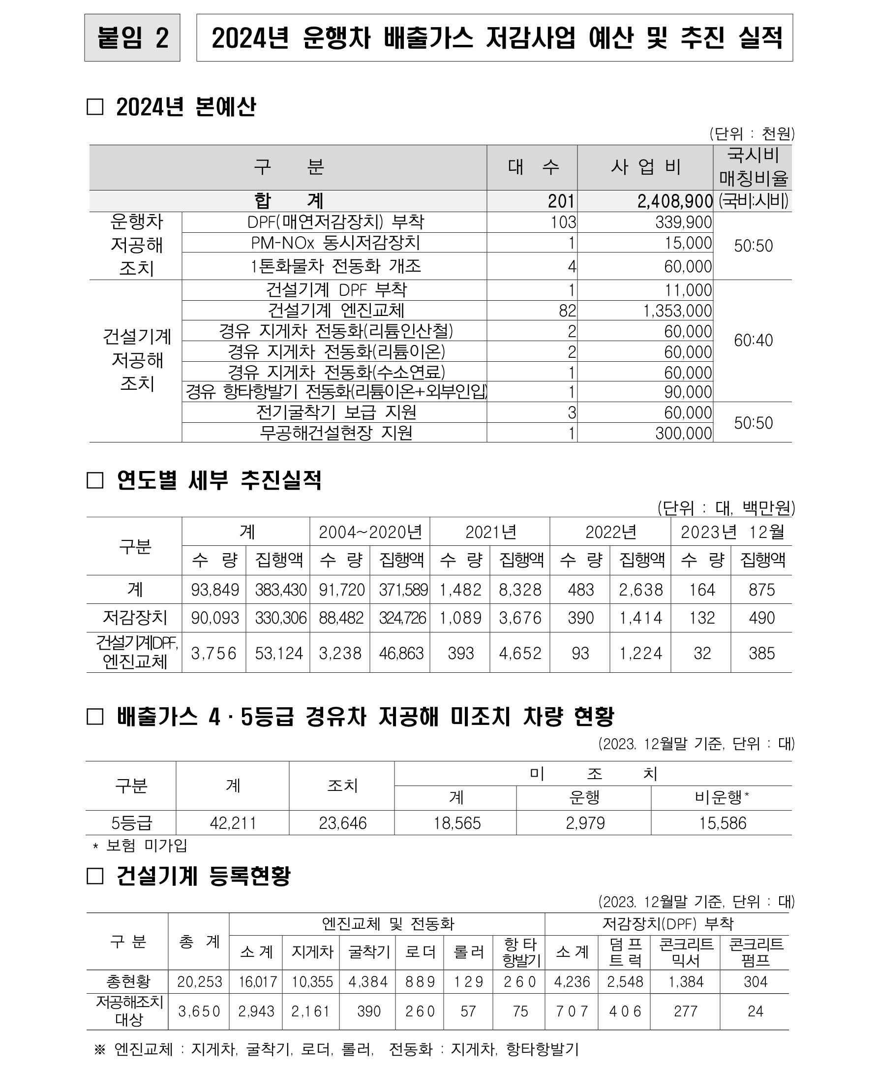 특히 2024년 올해는 신규사업으로 1톤 화물차 및 지게차·항타항발기 전동화, 전기 굴착기 및 무공해 건설 현장을 지원하는 사업을 확대 추진할 계획이라고 합니다.