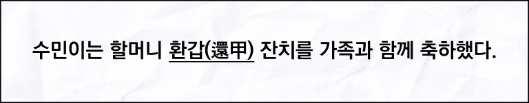 수민이는 할머니 환갑(*대) 잔치를 가족과 함께 축하했다.
