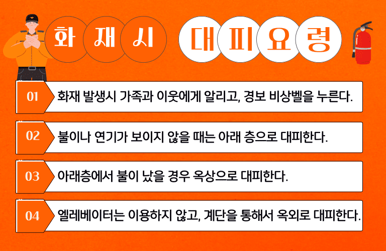Q. 아파트 4층에 불이 났다. 12층에 있는 주민들은 어떻게 대피해야할까?