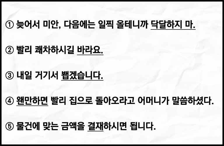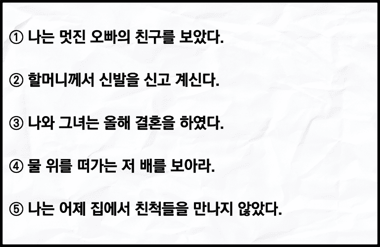 ⑤ 나는 어제 집에서 친척들을 만나지 않았다.