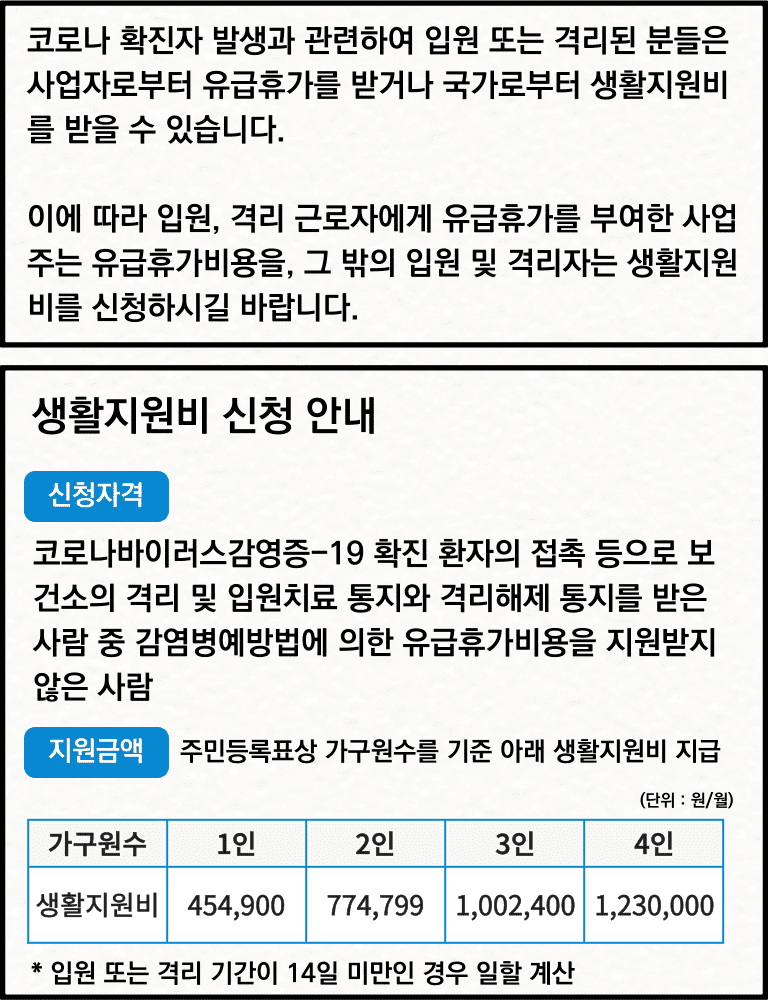 10. 주민등록상 1인 가구인 은석은 프리랜서이다. 은석은 1주일간 자가격리 후 음성 판정을 받아 격리 해제되었다. 광희가 생활지원비를 신청한다면 얼마를 받을 수 있을까? (10점)