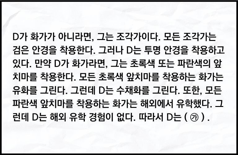 12. 다음의 내용에 따라 ㉮에 들어갈 결론으로 옳은 것은? (10점)