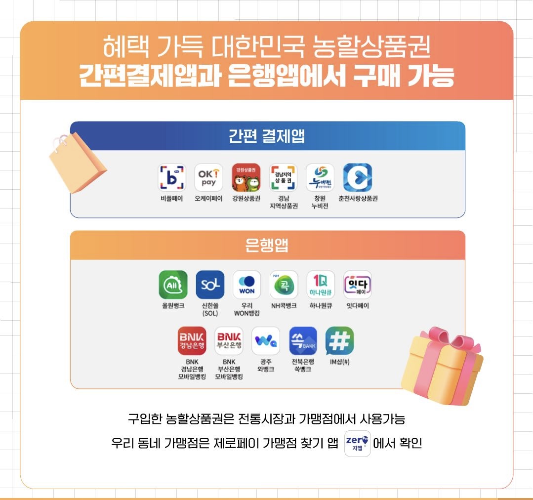 혜택 가득 대한민국 농할상품권 간편결제앱과 은행앱에서 구매 가능