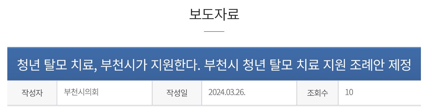 앞으로 경기도 부천시에 사는 19~39세 청년들은 앞으로 탈모 치료비를 지원받게 됩니다.