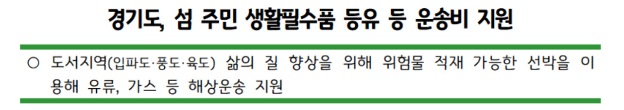 경기도가 섬 주민들의 생활 환경 개선을 위해 ‘도서지역 생활필수품 해상운송비 지원사업’을 2024년 3월 27일부터 추진한다고 합니다.