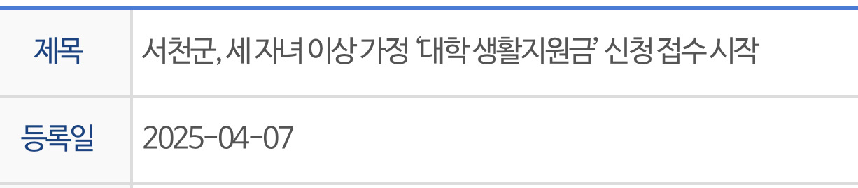 이번 지원사업은 공고일 기준 서천군에 3년 이상 연속 거주한 세 자녀 이상 가정을 대상으로 하며, 2025년도 대학에 재학 중인 자녀가 해당됩니다.