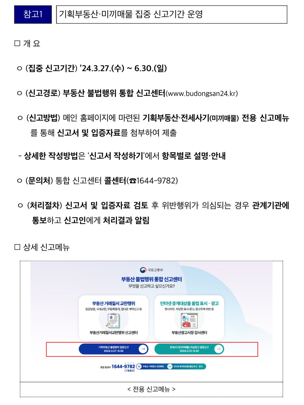 * 2024.3.27.(수)~6.30.(일), 부동산 불법행위 통합 신고센터(www.budongsan24.kr)