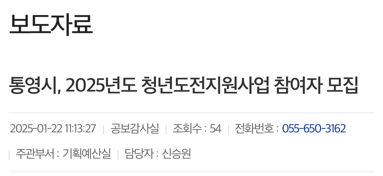 통영시 청년도전 지원사업 참여 대상은 구직단념청년, 자립준비청년, 청소년복지시설 입·퇴소 청년, 북한이탈청년, 지역특화 청년이며, 특히 올해는 2025년 2월에 고등학교를 졸업하고 상급학교에 진학하지 않는 졸업생과 대학교 졸업 후 6개월 이상 취(창)업 및 교육, 직업훈련 참여 이력이 없는 졸업 청년도 참여 가능합니다.