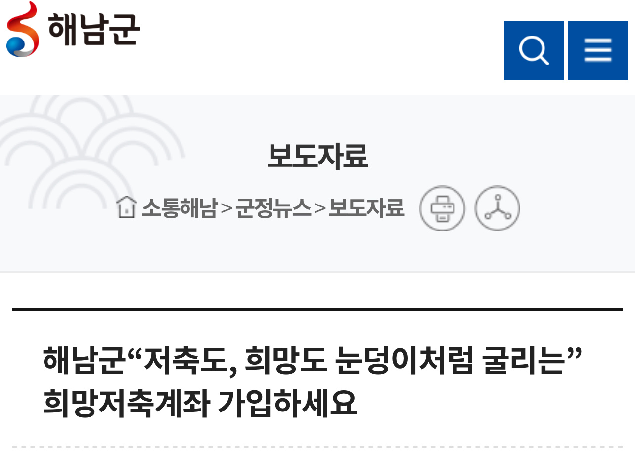 해남군은 저소득 가구의 목돈 마련의 기회인 2024 희망저축계좌의 신규가입자를 모집한다고 합니다.