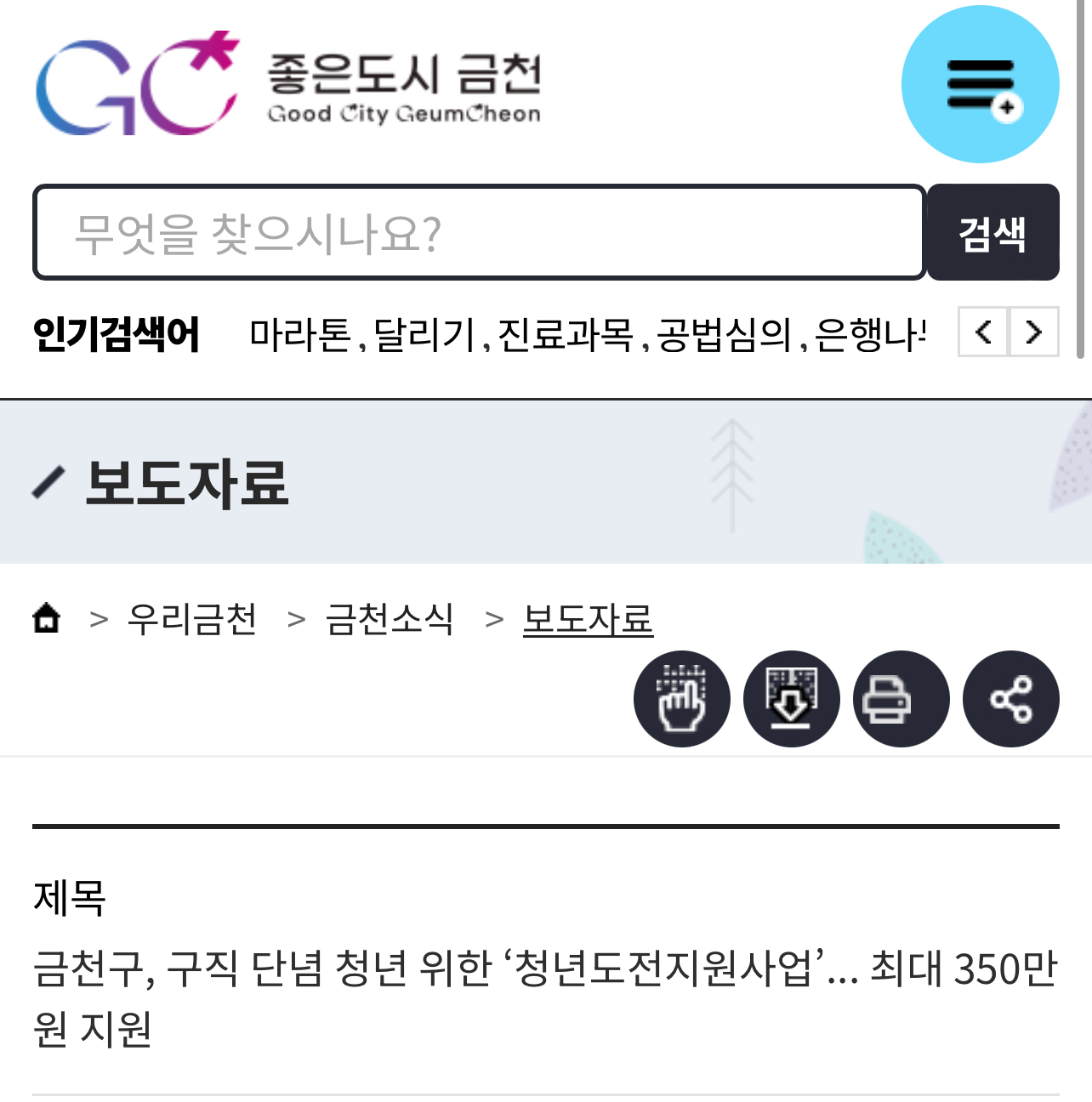 본 내용은 금천구 홈페이지 보도자료