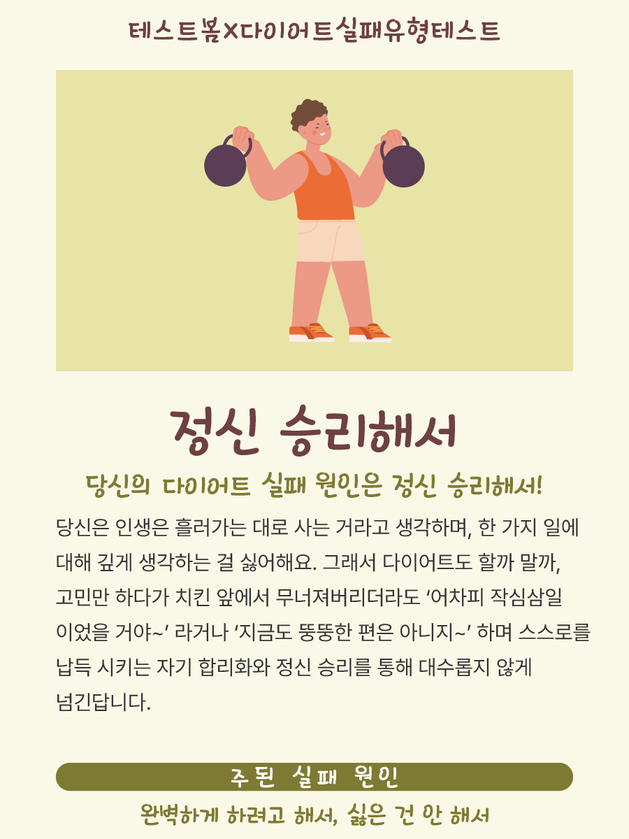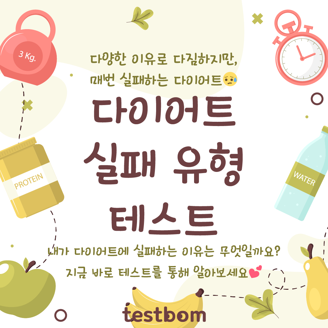 테스트봄에서 나온 ‘다이어트 실패 유형 테스트’를 소개드리겠습니다.