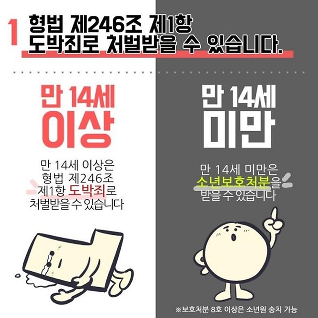 14세 이상은 형법 제246조 제1항 도박죄로 처벌받을 수 있음