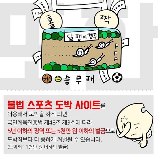 불법 스포츠 도박 사이트를 이용해서 도박을 하게 되면 국민체육진흥법 제48조 제3호에 따라 5년 이하의 징역 또는 5천만 원 이하의 벌금으로 도박죄보다 더 중하게 처벌될 수 있습니다.