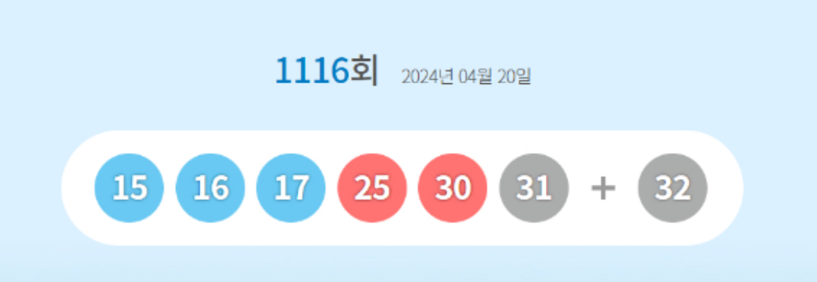추첨한 1116회 로또 당첨번호 조회 결과 15,16,17,25,30,31번