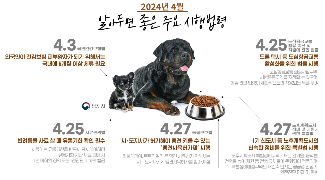 법제처에 따르면 시·도지사가 허가해야 맹견 키울 수 있는 ‘맹견사육허가제’ 시행되었다고 밝혔습니다.