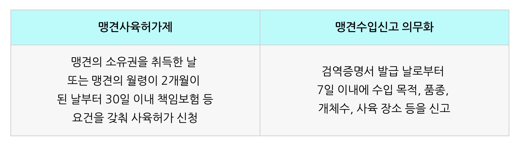 맹견을 사육하려는 사람은 동물을 등록하고 맹견 보험 가입 및 중성화 수술을 한 후 맹견사육허가를 신청해야 한다고 합니다.