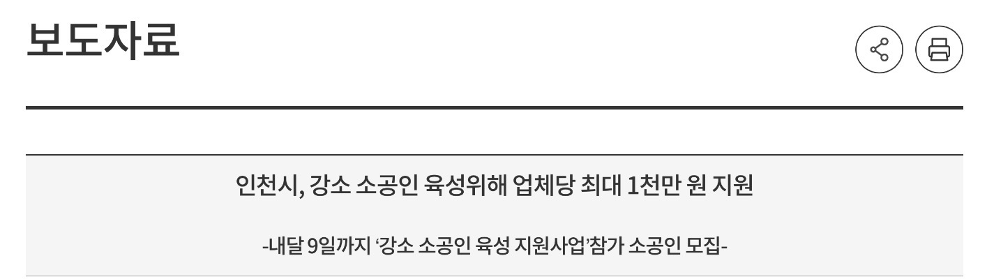 인천광역시는 소공인의 제조환경 개선과 제품 개발 및 홍보 확산을 위해 업체당 최대 1,000만 원을 지원하는 ‘강소 소공인 육성 지원사업’을 추진한다고 밝혔습니다.