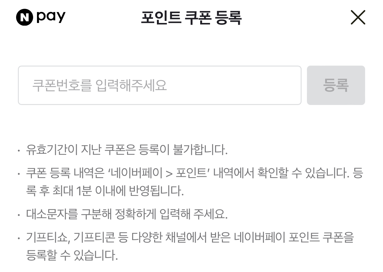 네이버페이 포인트 쿠폰 등록 시 유의사항