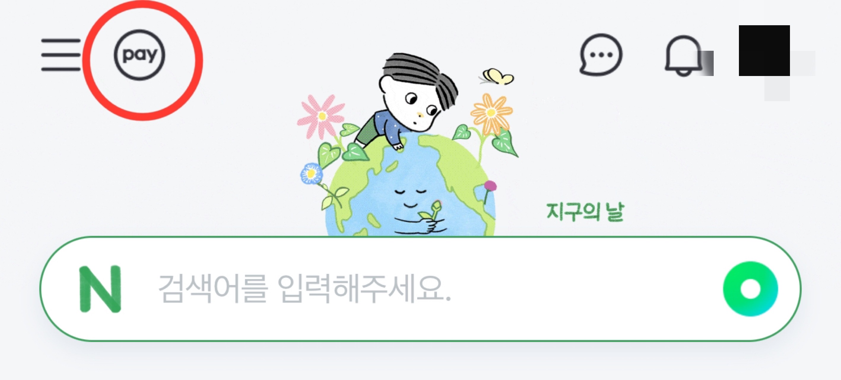 2. 네이버 메인화면 상단에 네이버페이로 접속(네이버 검색창에 ‘네이버페이’검색 후 접속해도 가능)