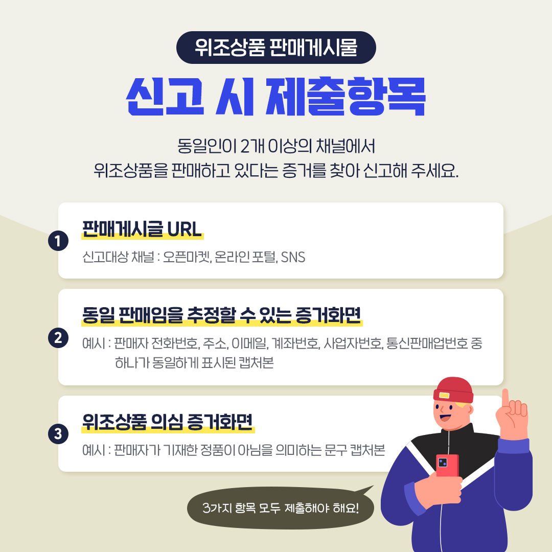 위조상품 판매게시물 신고 시 제출항목