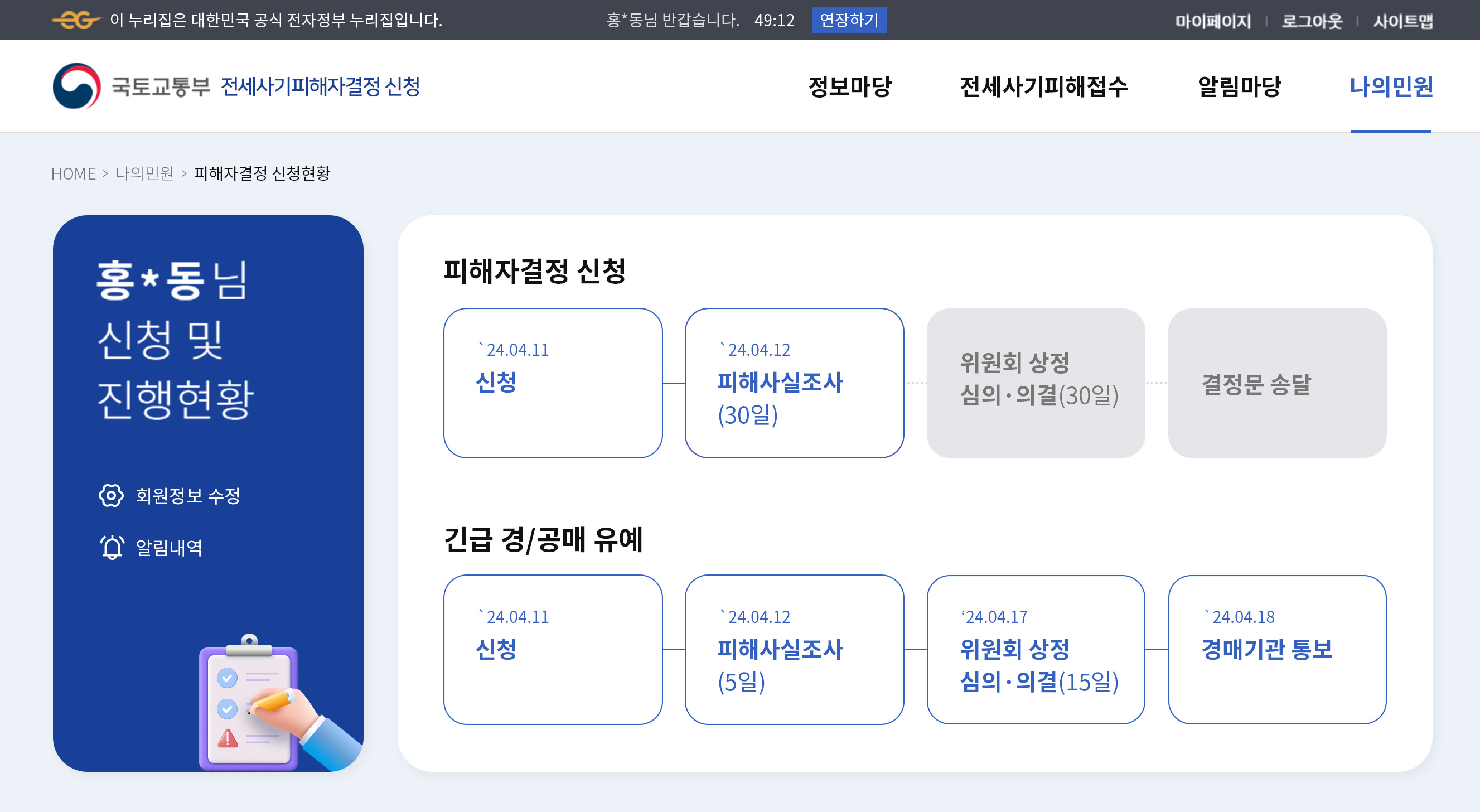 지원관리시스템으로 전세사기피해자 결정신청, 긴급한 경‧공매 유예 신청, 등을 온라인으로 간편하게 처리할 수 있게 되었다고 합니다.