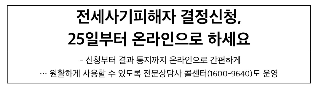 지금까지 전세사기피해자 결정신청과 긴급한 경‧공매 유예‧정지 신청을 위해서는 관련 서류*를 준비해 광역지자체에 방문 접수해야 했습니다.