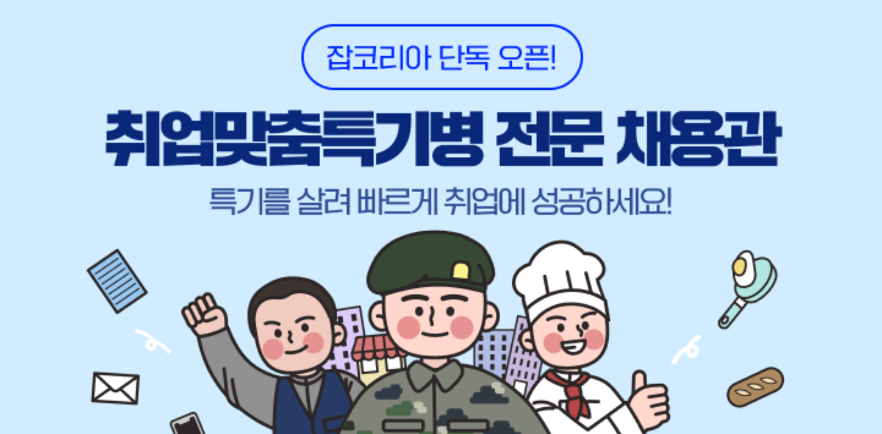 병무청에 따르면 병무청과 잡코리아는 지난해 6월 업무협약을 맺고 잡코리아 누리집에 ‘취업맞춤특기병 전문채용관’(https://m.jobkorea.co.kr/theme/mili-specialist)을 개설하여 군에서 복무했던 특기에 따라 분류된 취업 정보를 손쉽게 찾아볼 수 있도록 운영 중이라고 합니다.