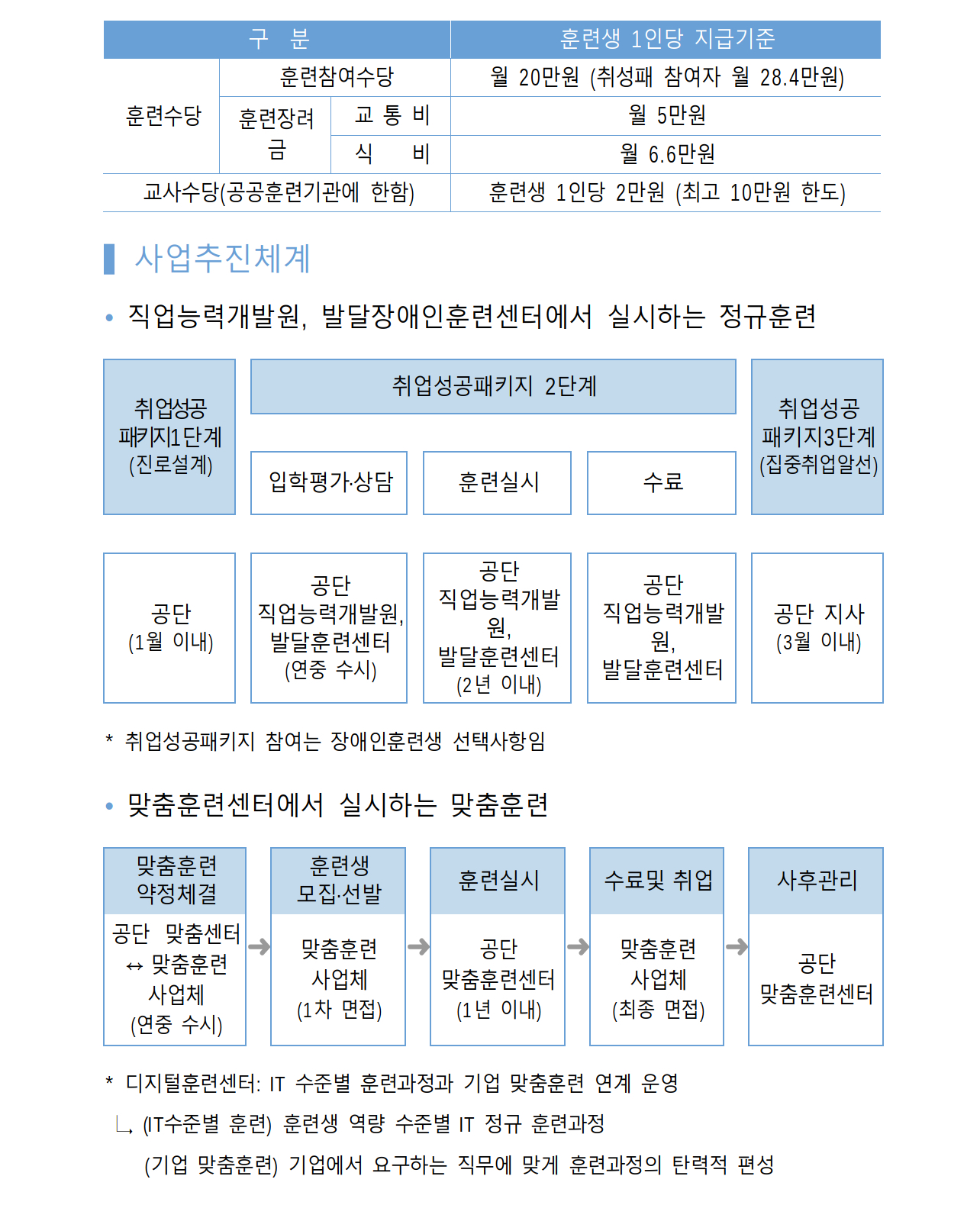 장애 특성 및 개인별·생애주기별 특성에 맞는 훈련과정 운영