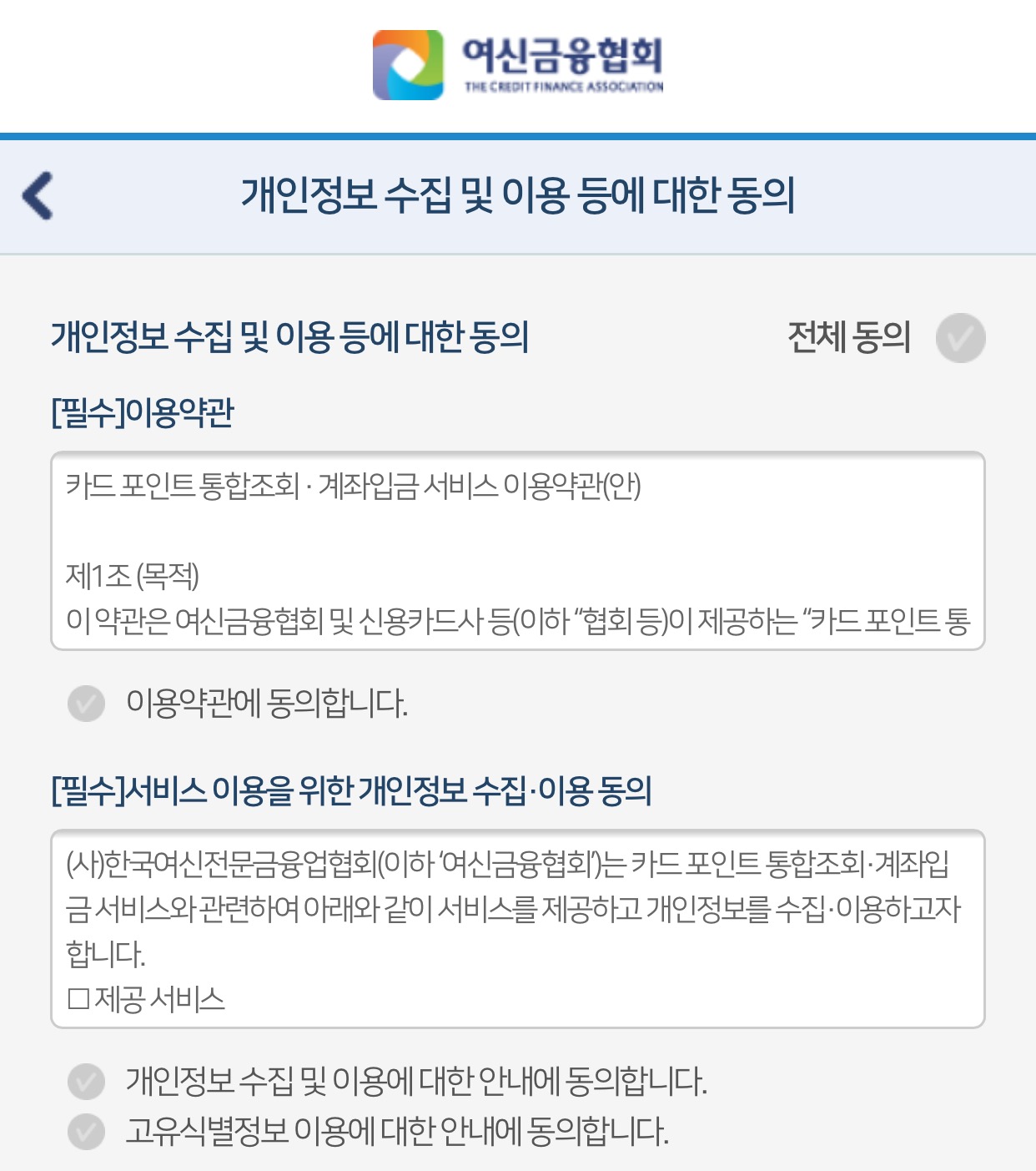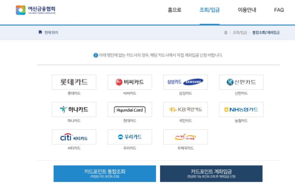 여신금융협회 카드포인트 통합조회 계좌입금