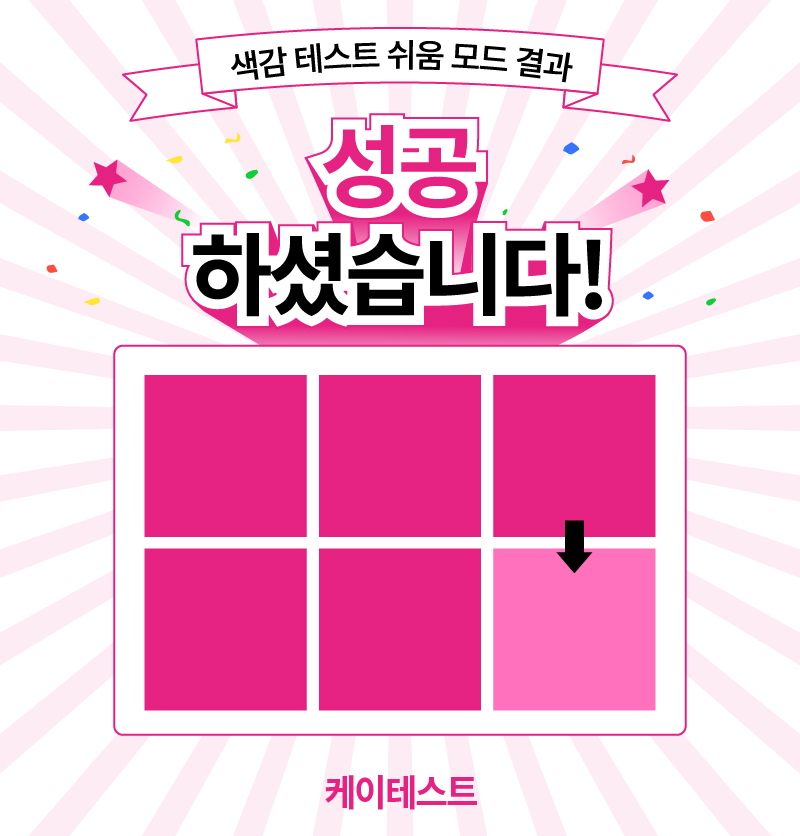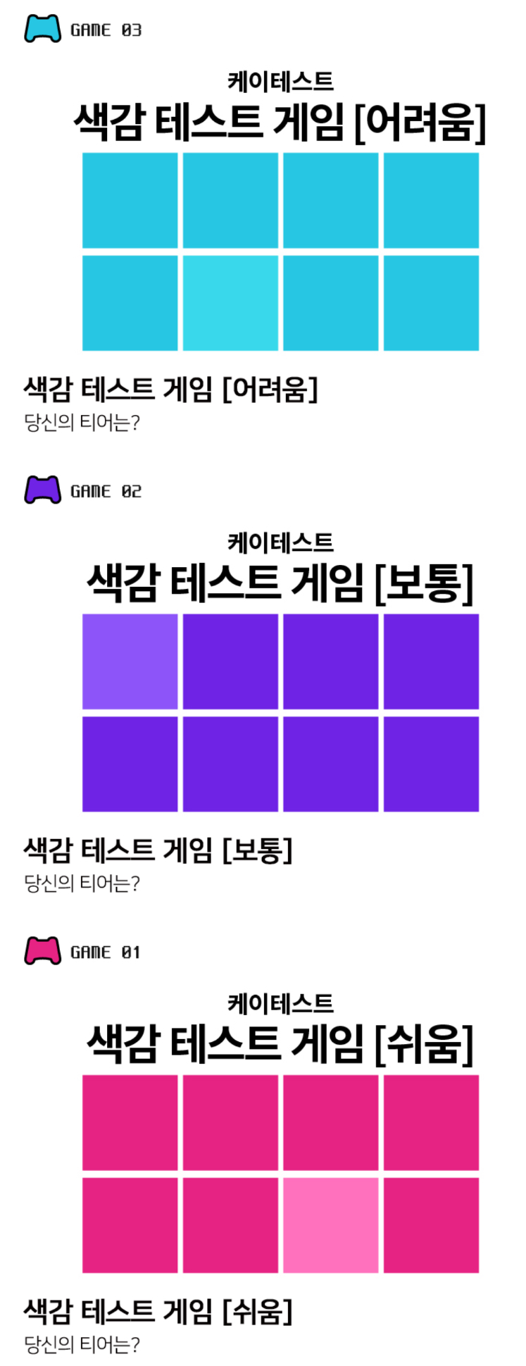 나는 얼마나 다른 색을 잘 찾고 색 구분을 잘하는 테스트해 볼 수 있는 케이테스트에서 나온 ‘색감 테스트 게임(쉬움, 보통, 어려움)’을 소개드리겠습니다.