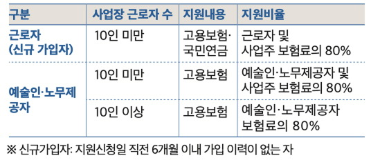 ** 예술인·노무제공자 및 사업주 각 월 최대 1만 4720원 범위에서 지원