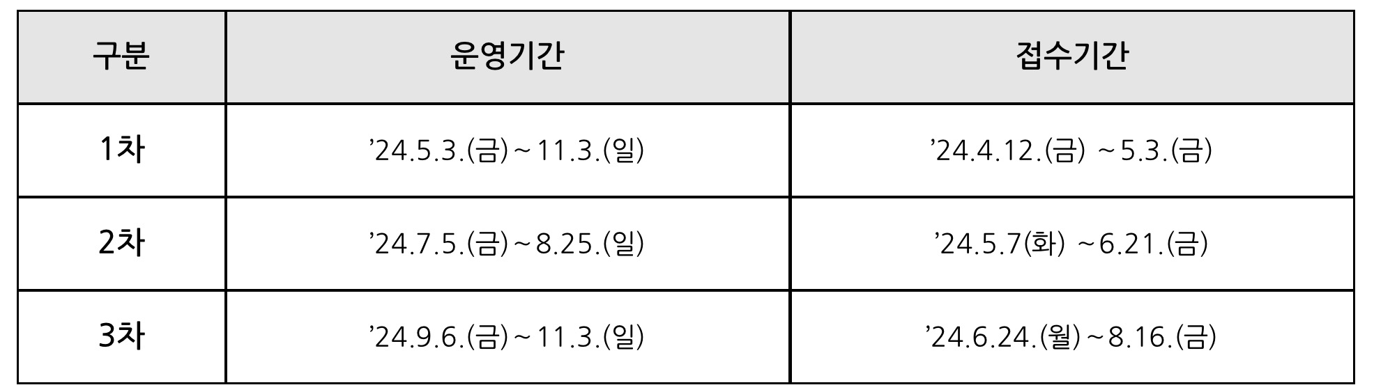 운영기간 및 접수기간