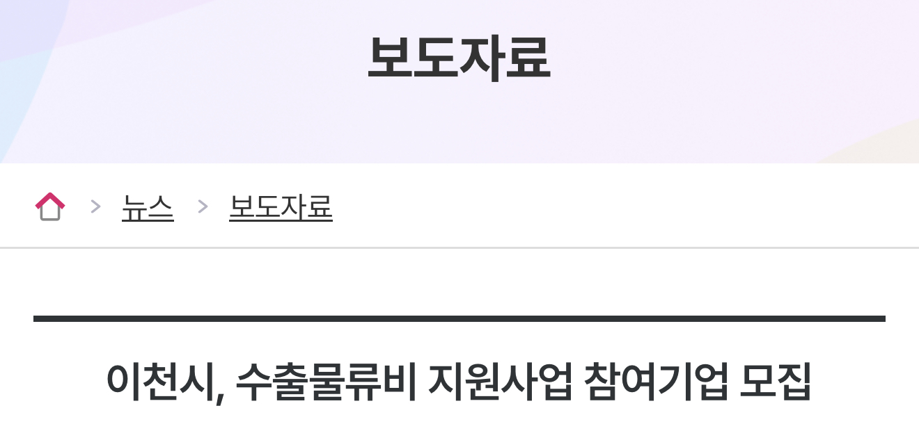 이천시(시장 김경희)는 2025년 4월 28일부터 이천시에 있는 수출 중소기업을 대상으로 수출물류비 지원사업 참여기업 17개사를 선착순으로 모집한다고 밝혔습니다.