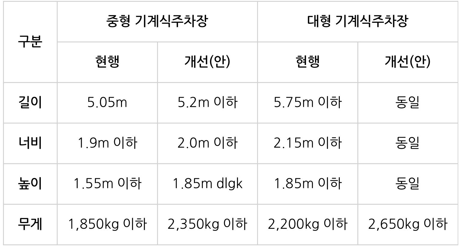참고로 기계식 주차장 주차장법이 강화된다고 합니다.