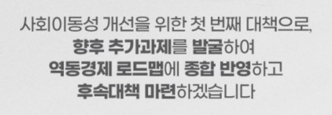 정부는 사회이동성 개선을 위한 첫 번째 대책으로, 향후 추가과제를 발굴하여 역동경제 로드맵에 종합 반 영하고 후속대책 마련하겠다고 밝혔습니다.