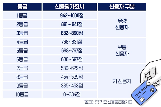 이렇다 보니 신용등급이 6등급 이하로 내려가면