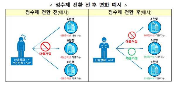 기존에 1~10등급으로 나뉘던 개인 신용등급제가