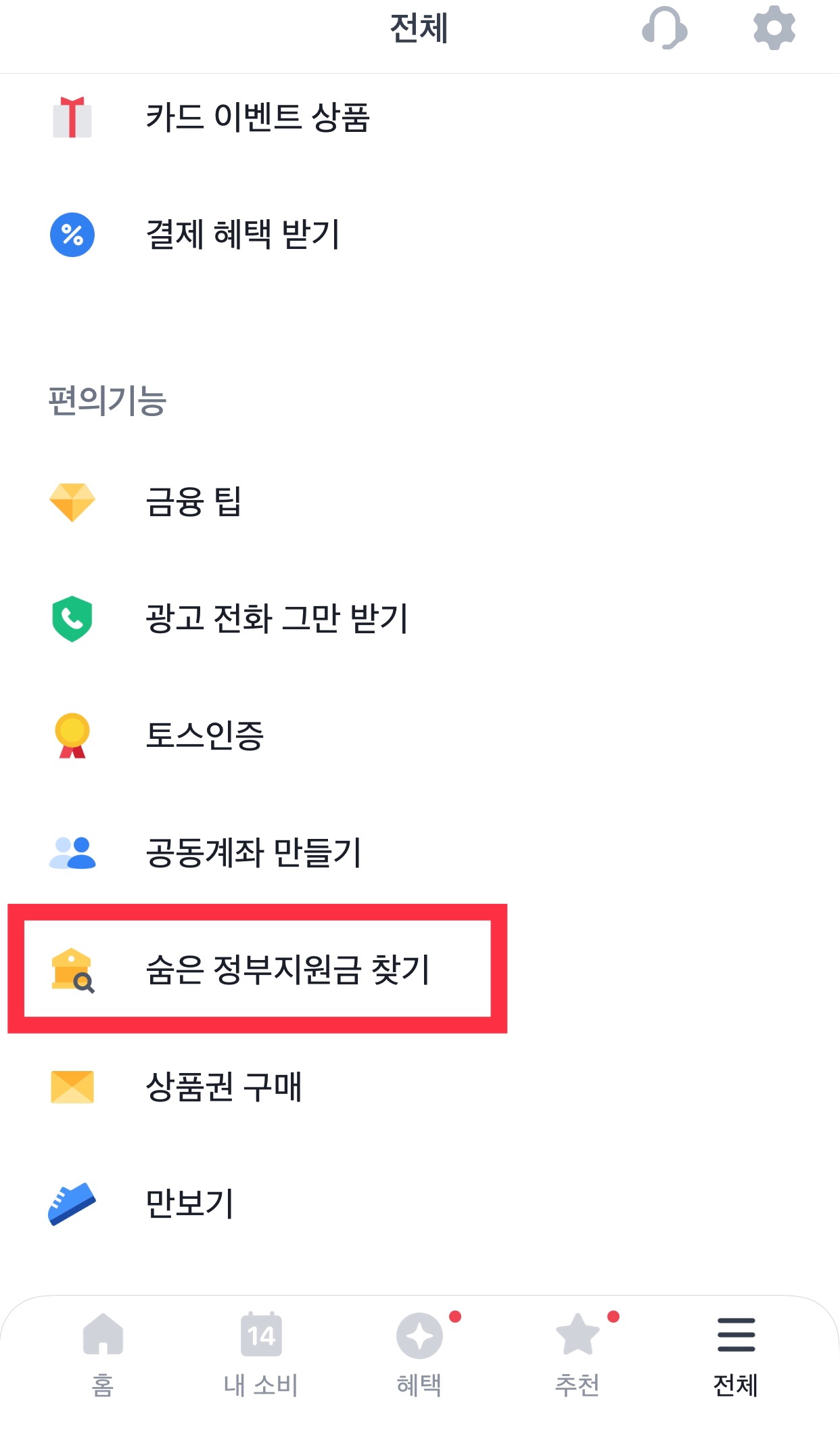 토스 숨은 정부지원금 찾기