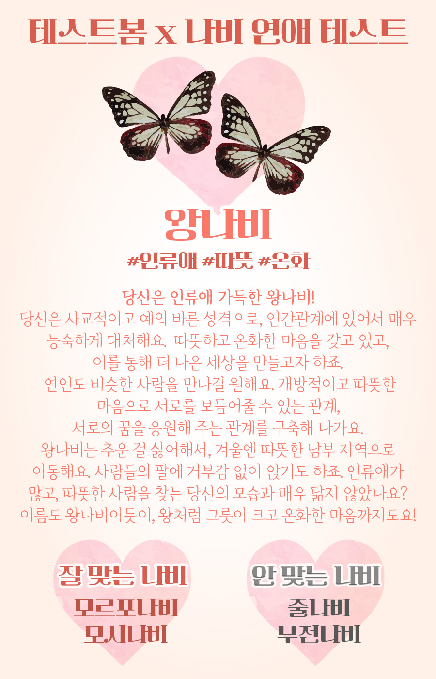나의 연애 스타일은 어떤 나비와 어울릴지 알아보는 테스트봄에서 나온 ‘나비 연애 테스트’를 소개드리겠습니다.